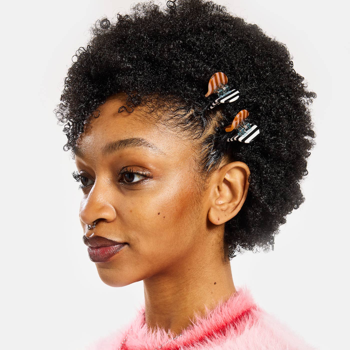 These small claws are perfect for all hair types and textures. Versatile and playful, use one to hold your hair back or multiple to create a look.