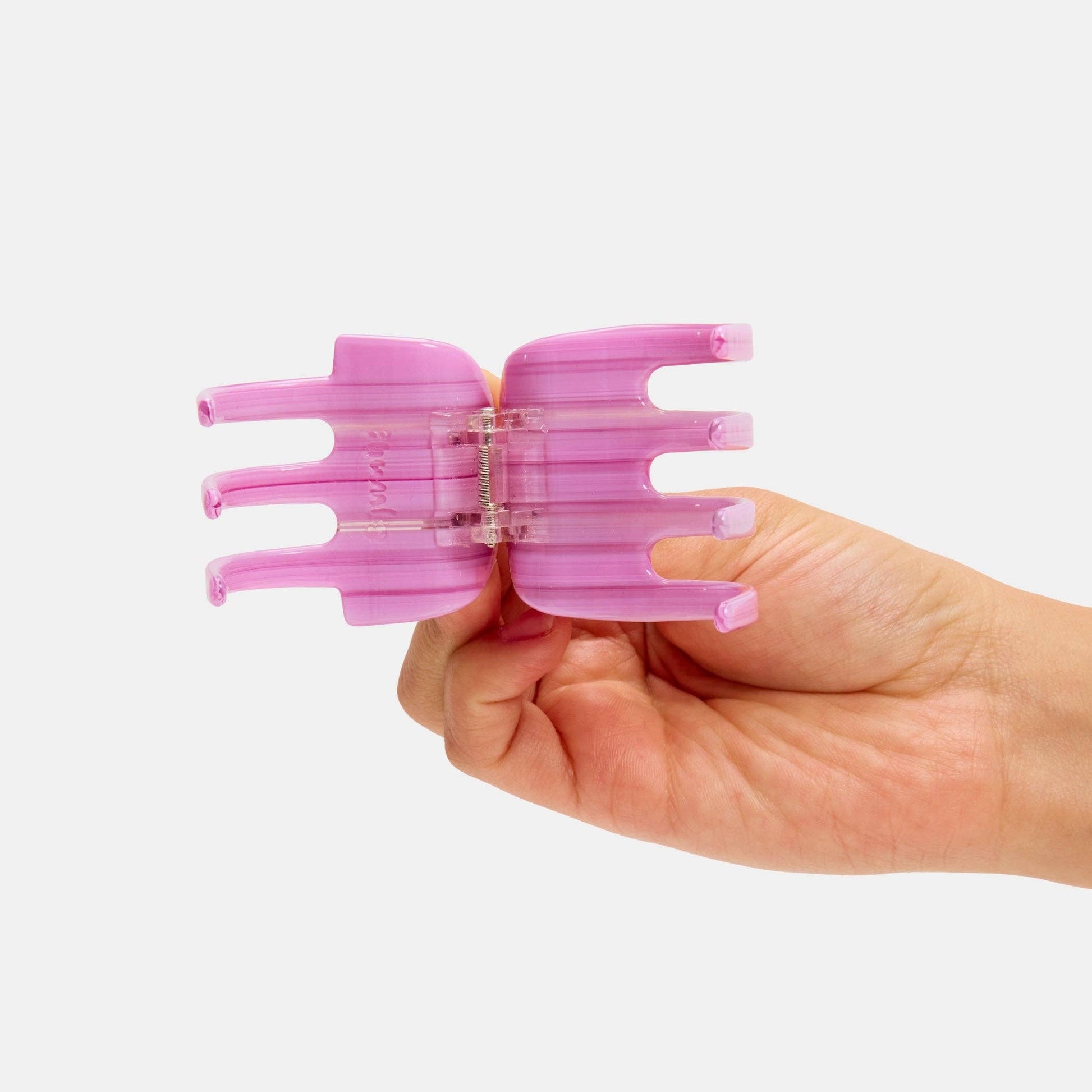 This medium sized claw is uniquely perfect for curly, textured, medium to thick hair. Large teeth give a gentle but firm hold, without crushing curls.