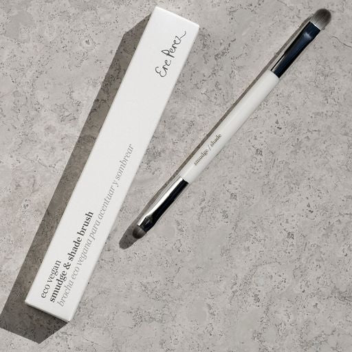 This expertly designed eye brush can be used to create a variety of eye looks. Featuring a compact short side to smudge liners and darker shadow colours and a shading side to precisely deposit the perfect amount of eye shadow. Made with high quality biodegradable materials – vegan bristles and a corn resin handle.