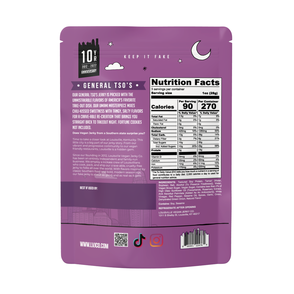 Louisville Vegan Jerky Co. - Vegan & Plant Based General Tso's Jerky 3 oz